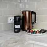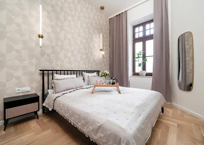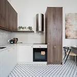 Apartament ma pełnowymiarową kuchnię z piekarnikiem i zmywarką do naczyń. Międzynarodowe lotnisko Łódź im. Władysława Reymonta oddalone jest od apartamentu o 5 km, a dworzec Kilinskiego - Pilsudskiego - tylko kilka kroków stąd.